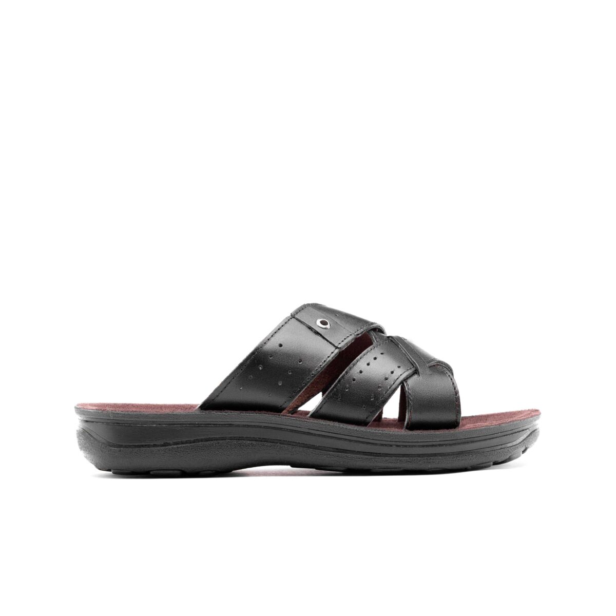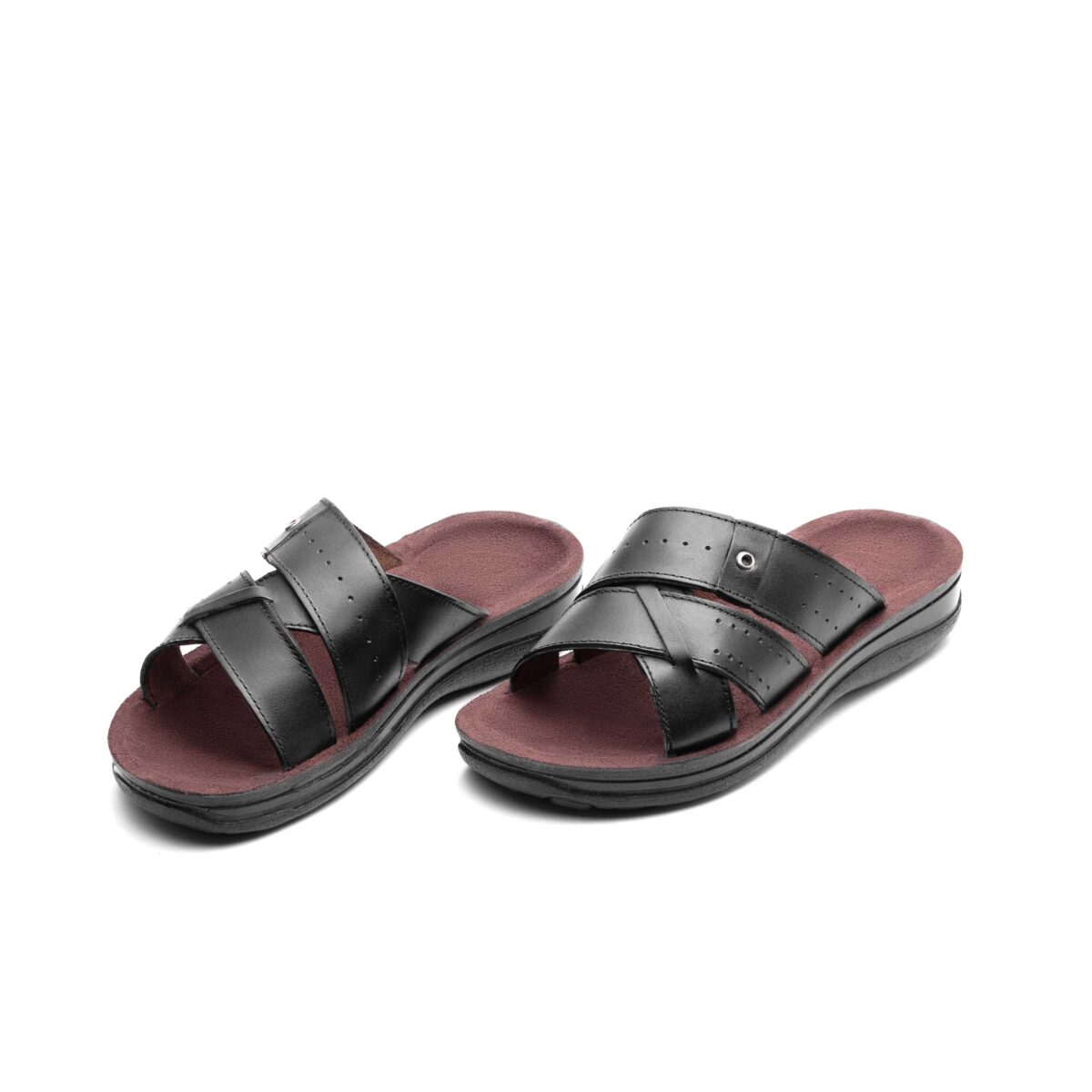 دمپایی چرم اصل تبریز با رویه چرم طبیعی، آستر چرم صنعتی، کفی سوئیت پارچه ای ضد تعریق و زیره تزریق مستقیم