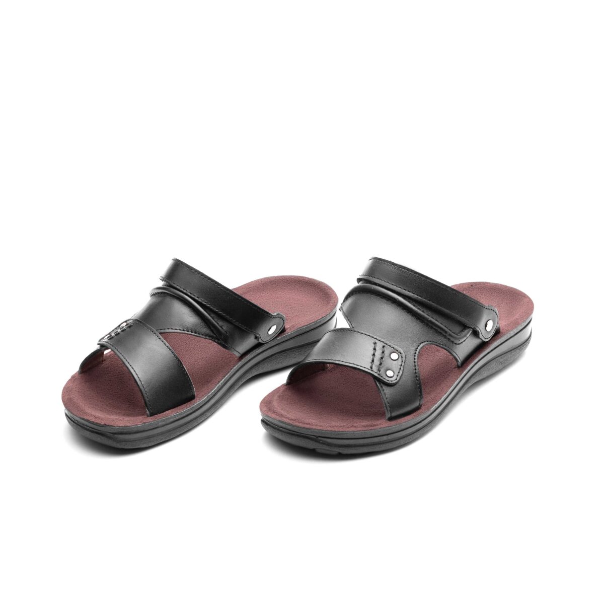 دمپایی چرم اصل تبریز با رویه چرم طبیعی، آستر چرم صنعتی، کفی سوئیت پارچه ای ضد تعریق و زیره تزریق مستقیم