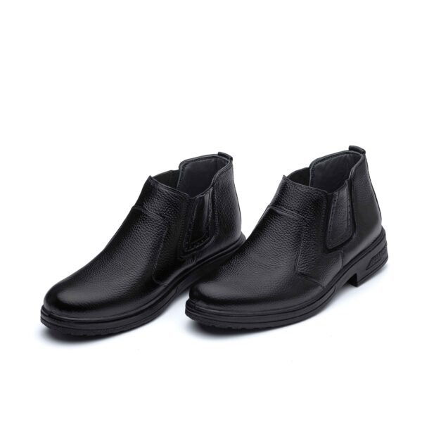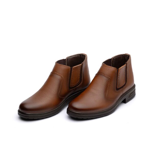 پوتین چرم اصل تبریز با رویه چرم طبیعی، آستر چرم صنعتی، کفی سوئیت پارچه ای و زیره تزریق