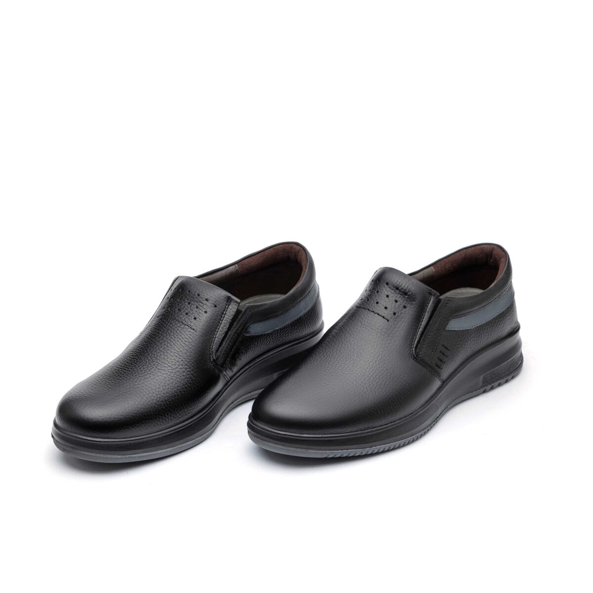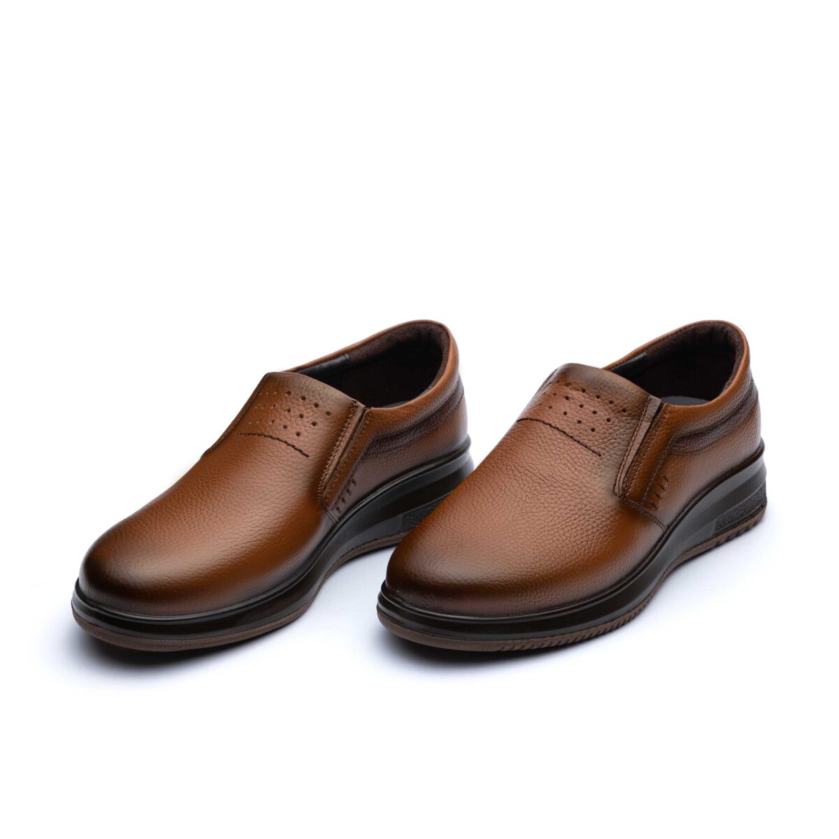 کفش چرم اصل تبریز با رویه چرم طبیعی، آستر چرم طبیعی یا چرم صنعتی، کفی طبی چرم طبیعی یا کفی سوئیت پارچه ای و زیره تزریق